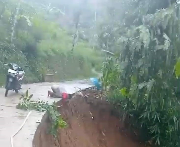Longsor pada pukul 16.00 WIB terjadi di tebing bahu jalan sepanjang sekitar 15 meter dan menimpa area perkebunan warga. Tidak ada kerusakan rumah.