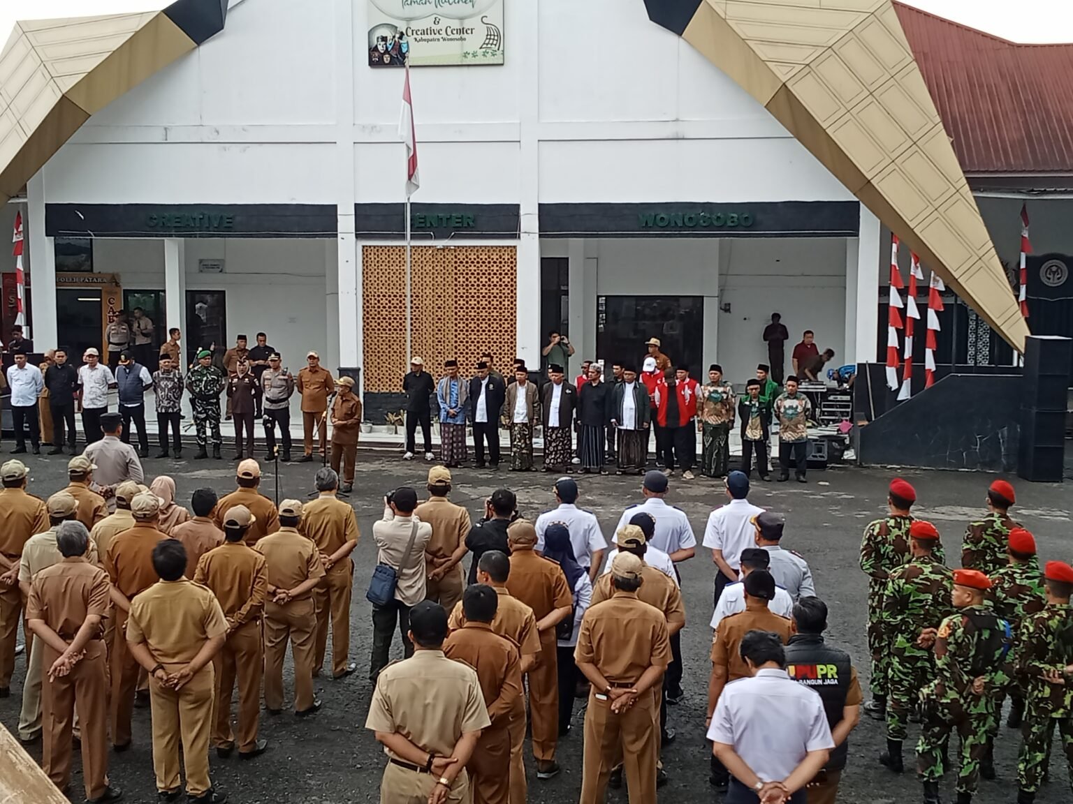 Wonosobo (Lintas Topik) –Ratusan Elemen TNI, Polri, pimpinan OPD, camat, kades, hingga ormas mengikuti Apel Siaga di Gerbang Mandala Wisata, Sabtu (30/8/2025).