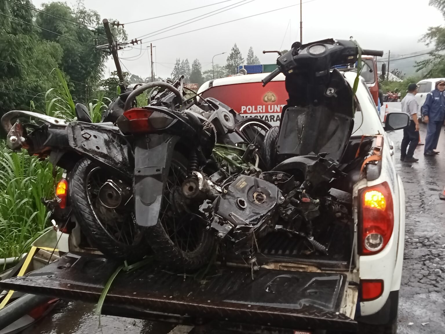 Saat memasuki jalur menurun dengan kondisi hujan, sistem pengereman diduga tidak berfungsi secara optimal.