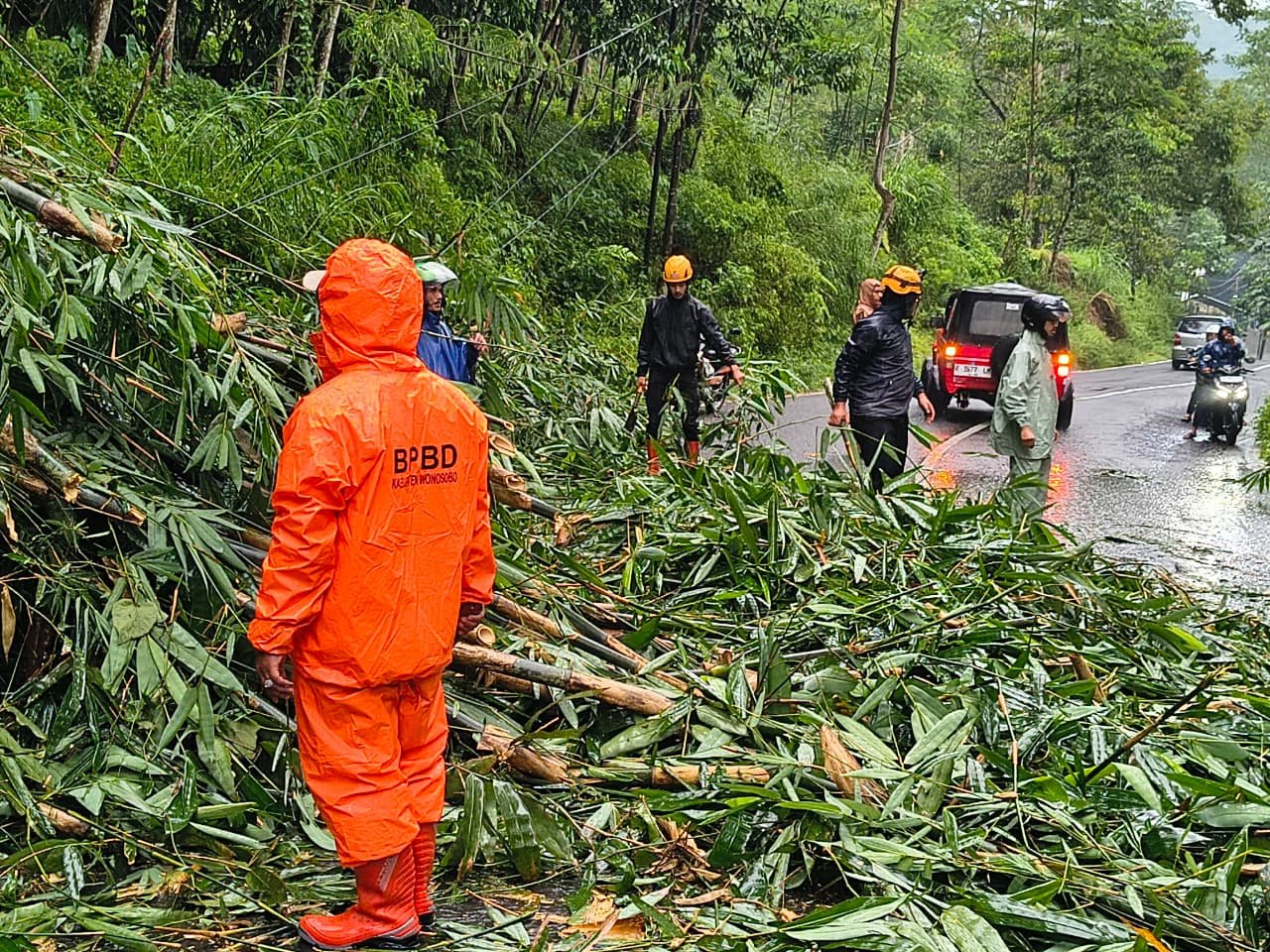 Wonosobo (Lintas Topik.com) – Hujan lebat yang mengguyur wilayah Wonosobo selama lebih dari dua jam menyebabkan pohon bambu tumbang dan menutup akses jalan di Jalan Lingkar Selatan – Tanjakan Losari, Kelurahan Wonorejo, Kecamatan Selomerto, Rabu (22/10/2025) sekitar pukul 15.45 WIB.