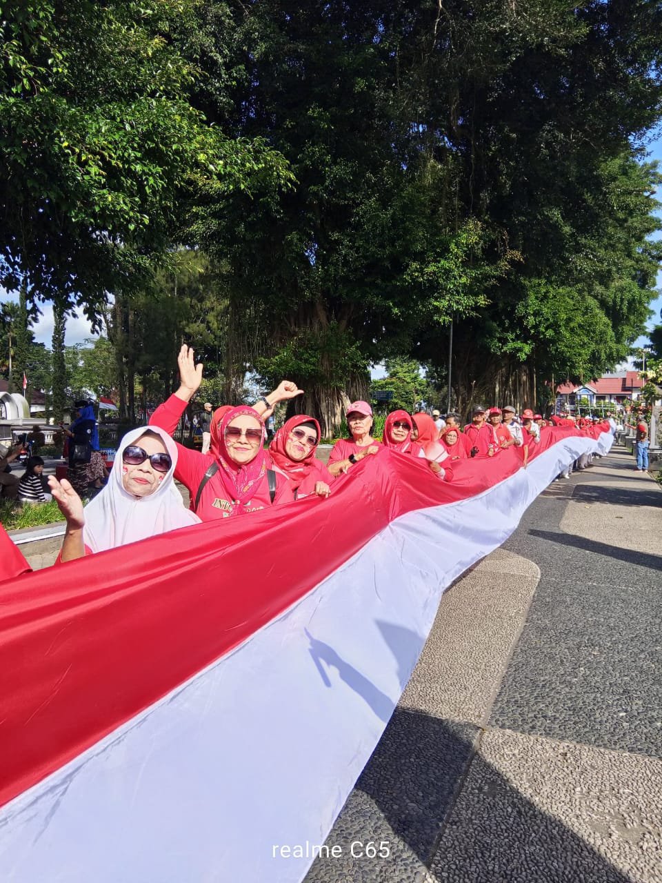 “Alhamdulillah, hari ini kami melaksanakan pawai keliling Alun-Alun dengan membawa bendera sepanjang 80 meter. Panjang bendera dipilih untuk menandai usia kemerdekaan Indonesia ke-80,” ujarnya.